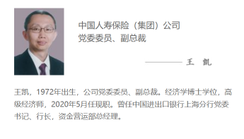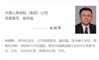从国有大行高管任上跨界至国有保险集团,在业内不乏先例。2024年1月,林朝晖从建设银行北京市分行行长升任国寿集团党委委员、副总裁。曾任中国进出口银行上海分行行长的王凯在2020年5月出任国寿集团党委委员、副总裁。